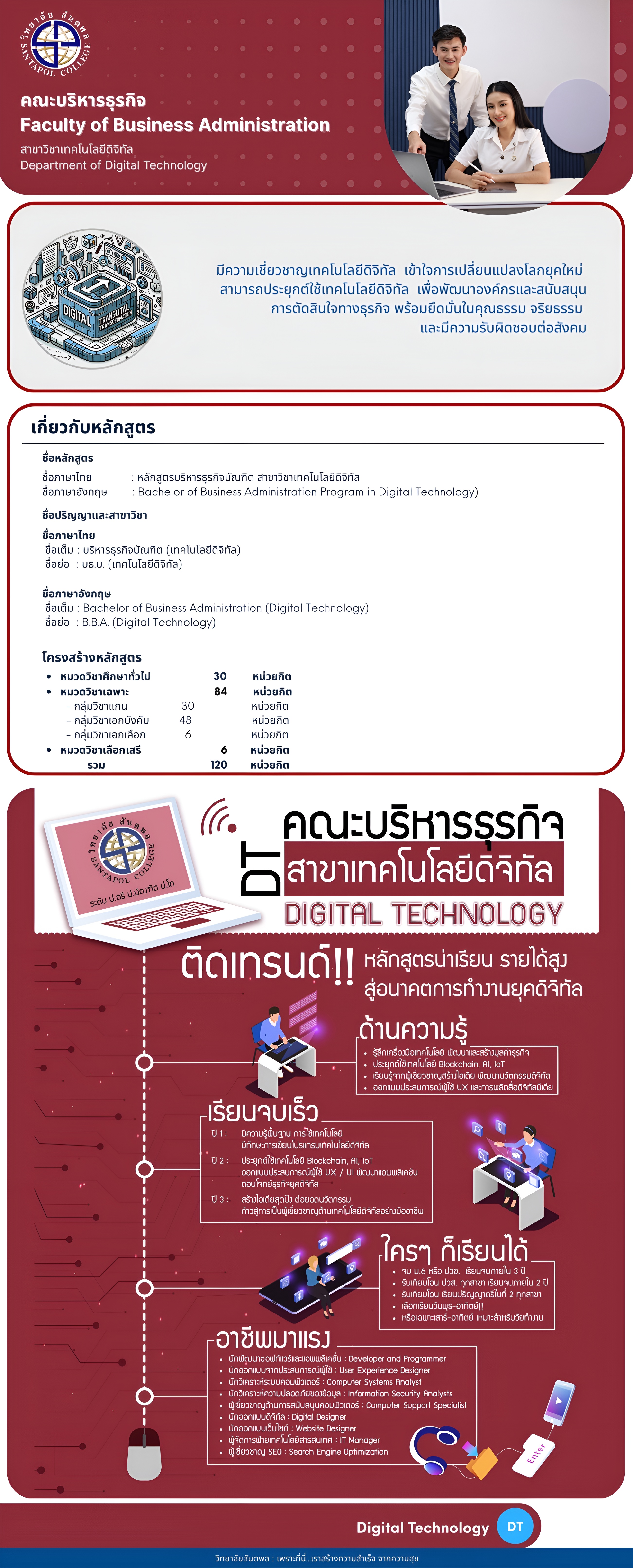 หลักสูตรบริหารธุรกิจบัณฑิต สาขาวิชาเทคโนโลยีดิจิทัล